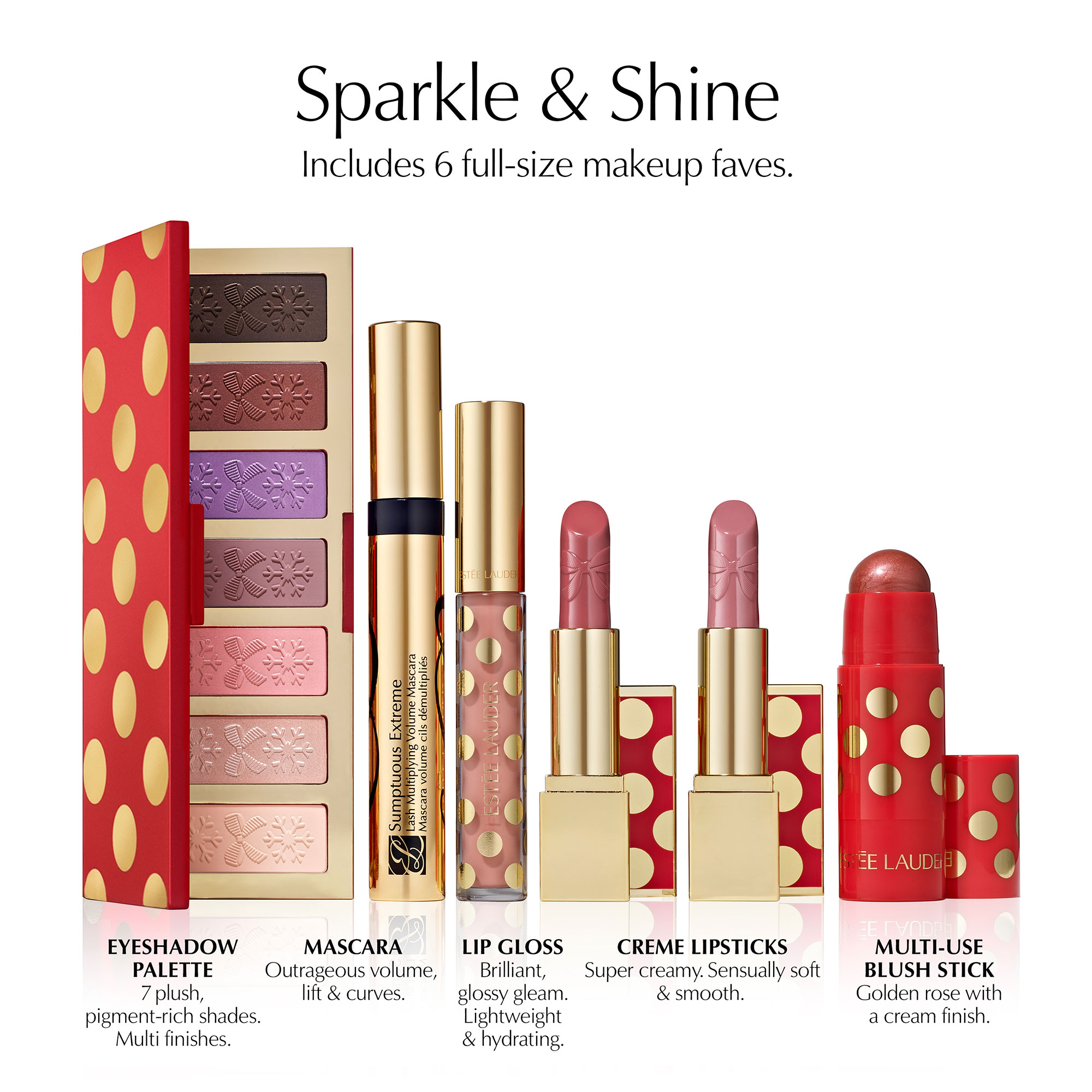 Notre plus gros cadeau, dans une seule collection pleine de gaieté. Le tout dans une mallette de luxe fabriquée à partir de tissu recyclé à 100 %. Assurez-vous de conserver votre maquillage glamour dans un compartiment séparé. Voir tous les détails sur les nuances et les formats ci-dessous.